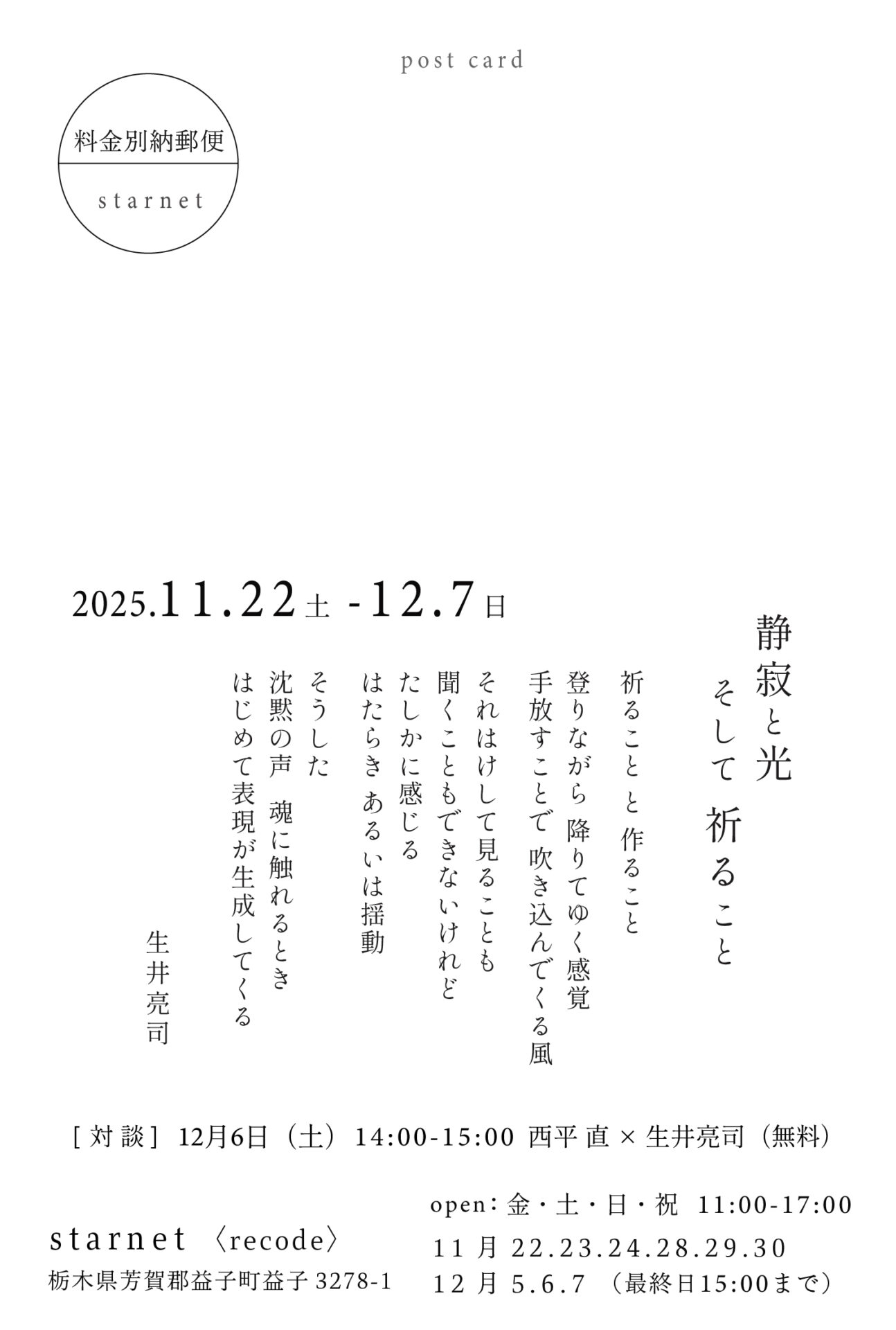 企画展|生井亮司 – 静寂と光、そして祈ること – 2025.11.22-12.7