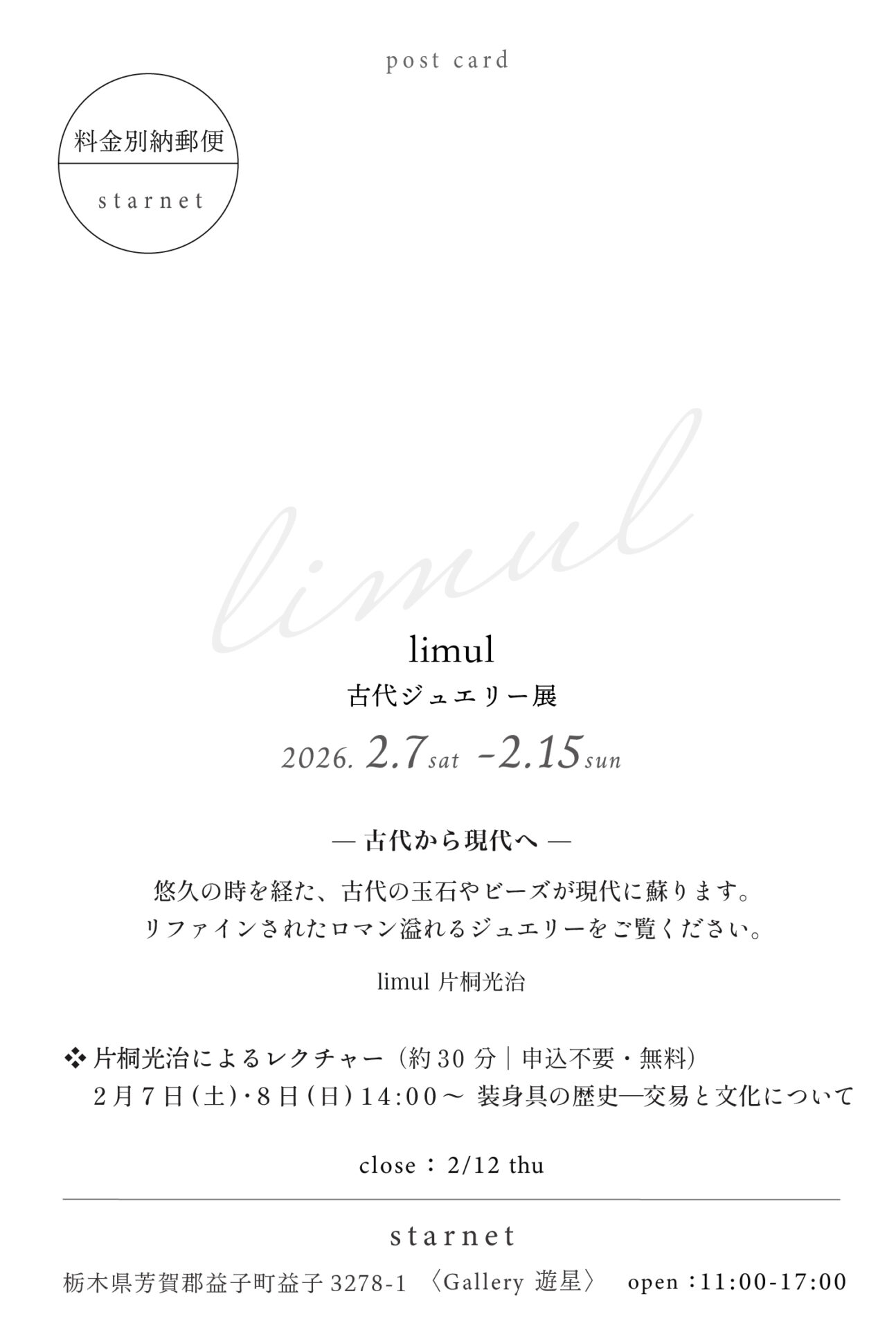 企画展|limul 古代ジュエリー展 2026.2.7-2.15