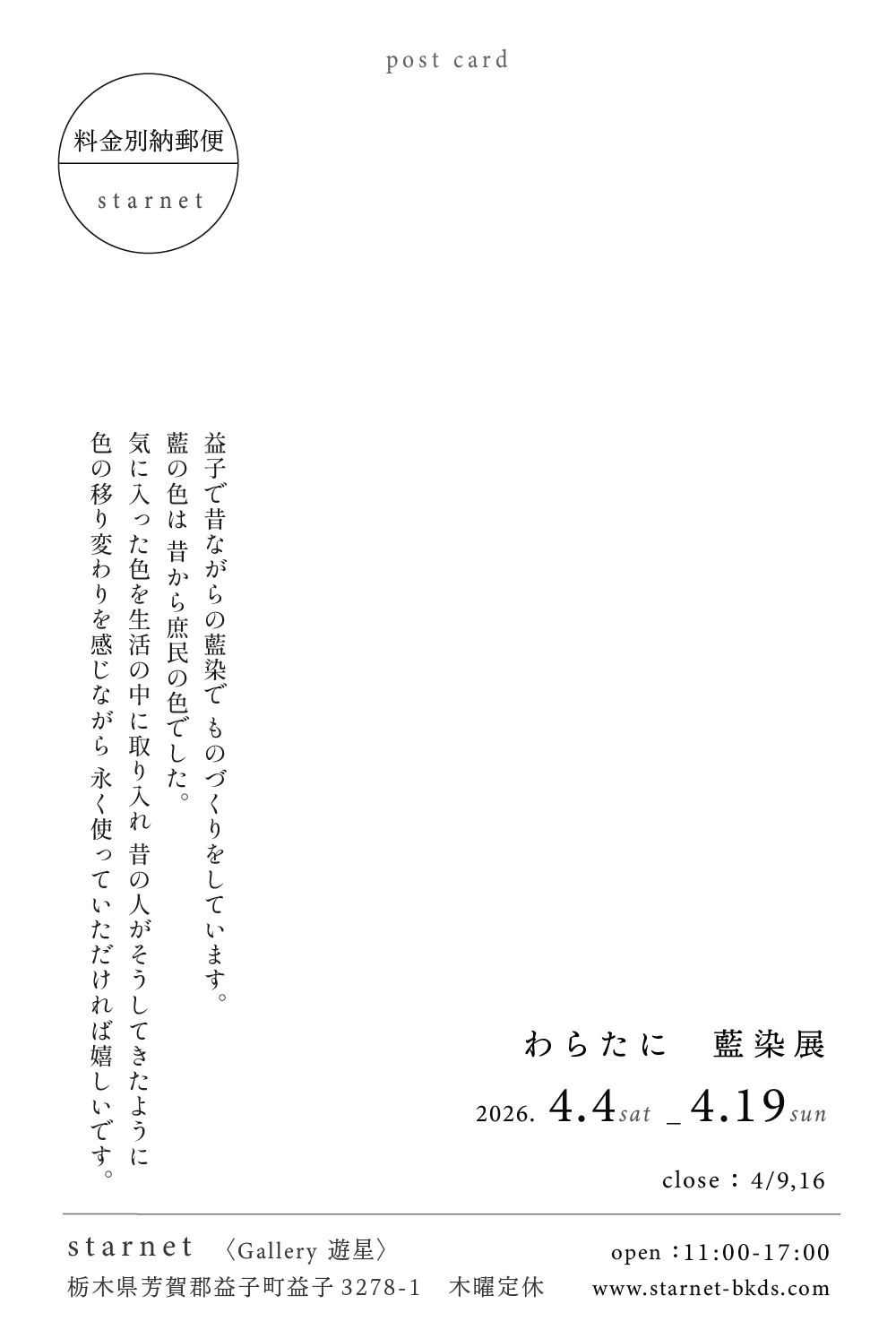 企画展|わらたに 藍染展 2026.4.4-4.19